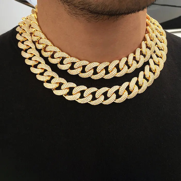 - Thick Cuban chain, diamond-studded chain - Pendants that symbolize power, such...