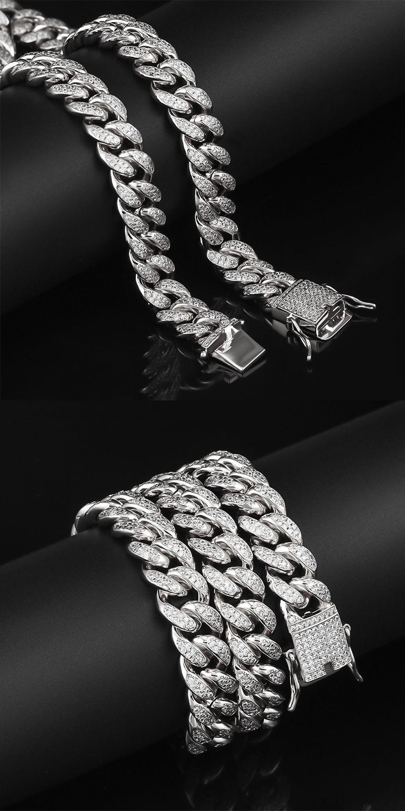 Iced Out Cuban Link Chains Necklace in White Gold both comfort and luxury. Let you become a bright spot in the crowd. The necklace is a nice handcrafted piece & makes a perfect piece to wear by itself. High Quality and polished.