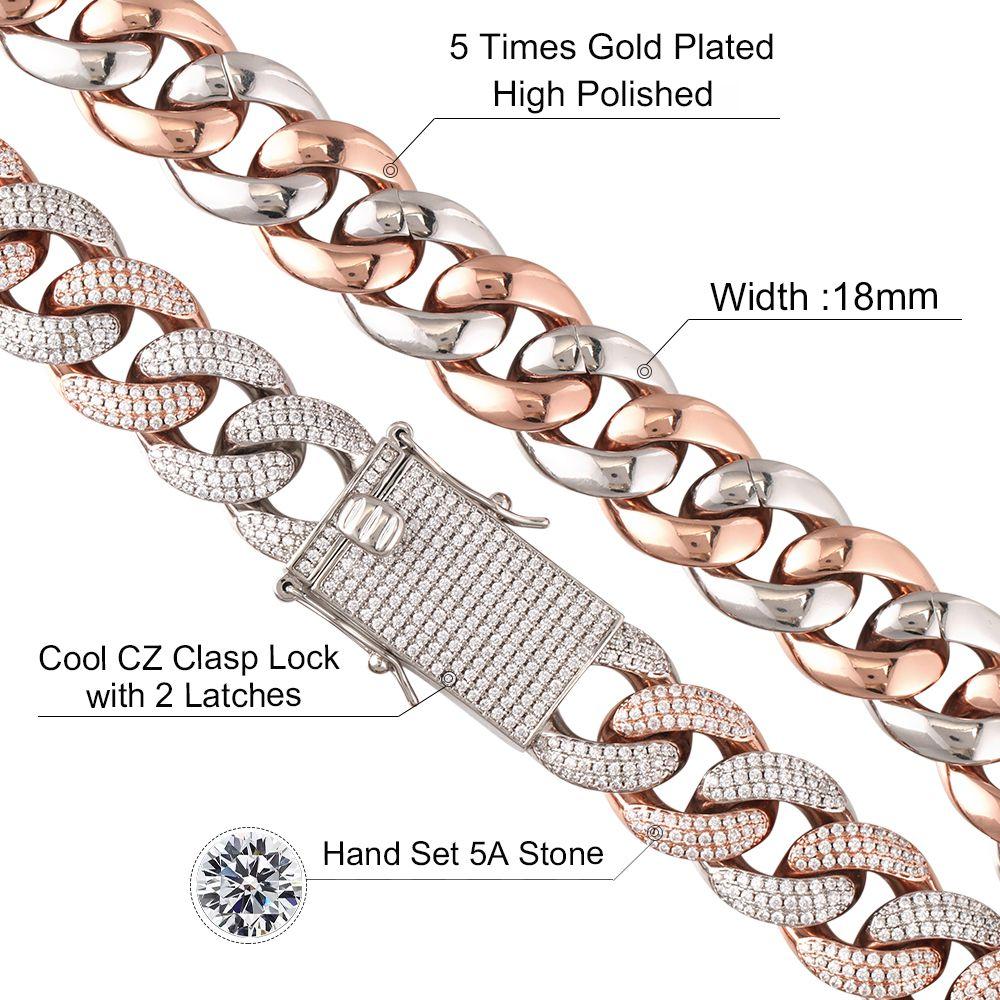 Iced Out Cuban Link Chain Necklace in Rose Gold both comfort and luxury. Let you become a bright spot in the crowd. The necklace is a nice handcrafted piece & makes a perfect piece to wear by itself. High Quality and polished.