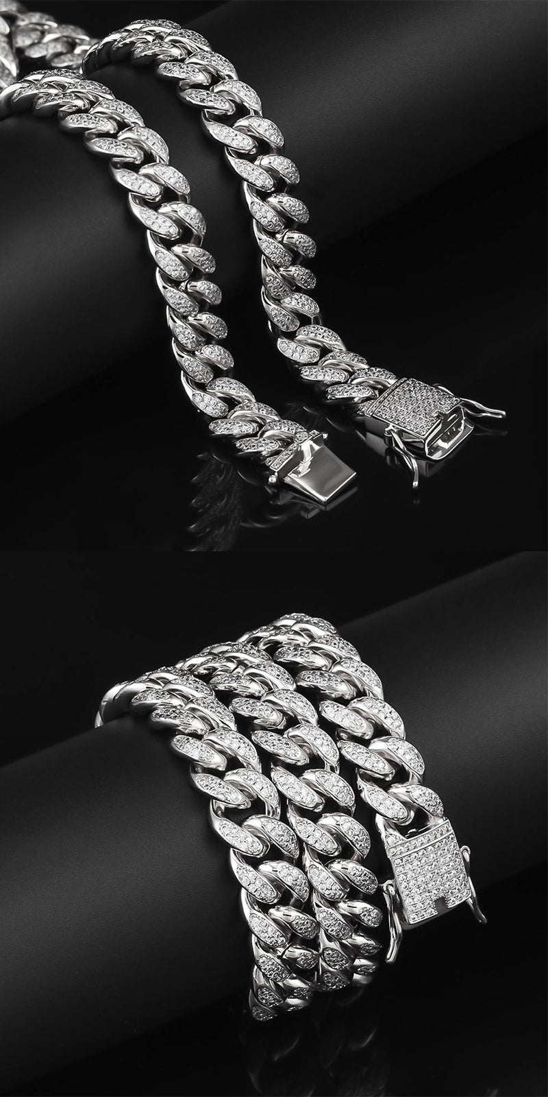 12MM White Gold Plated Iced Out Flooded Cuban Link Chain