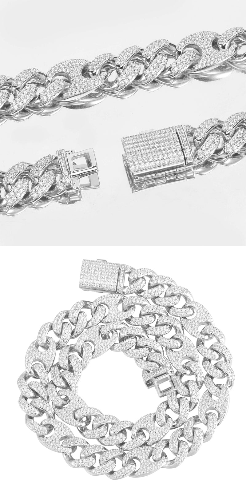 15MM White Gold Plated Iced Out Cuban Link Chain Necklace