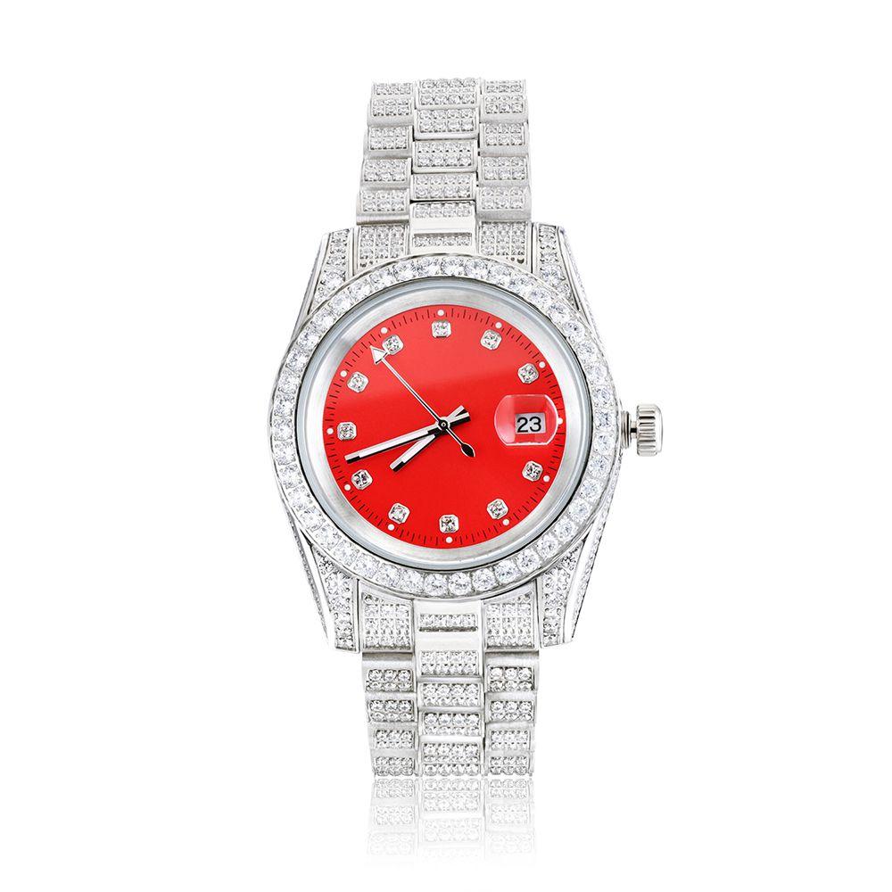 Iced Out Red Dial Watch in White Gold both comfort and luxury. Let you become a bright spot in the crowd. The watch is a nice handcrafted piece & makes a perfect piece to wear by itself. High Quality and polished.
